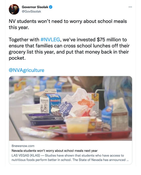 A Paraqeet search of “back to school” and “lunches” showed that states such as California and Nevada are on the case. Gov. Steve Sisolak of Nevada tweeted: