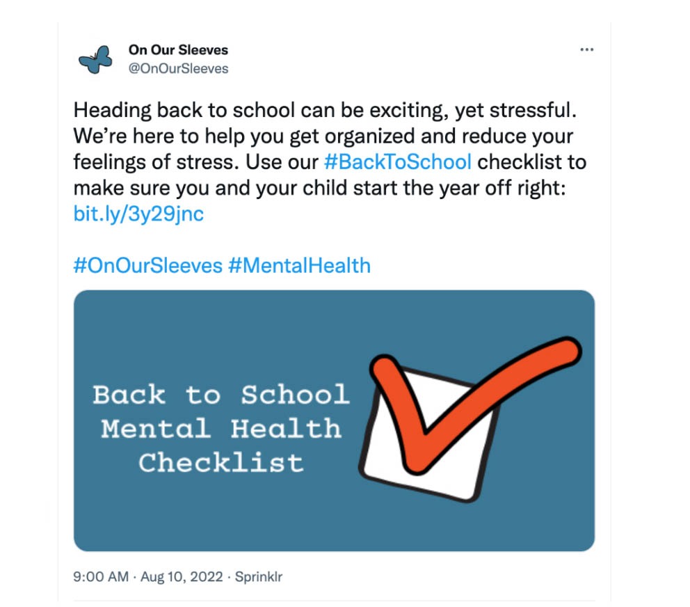 While spiral notebooks, No. 2 pencils, tape and glue sticks may top back-to-school checklists, @OnOurSleeves, a nonprofit working to improve children’s mental health, reminded parents and caregivers that preparing for life back in the classroom requires more than a trip to Staples. Reducing stress, getting a good night’s sleep, creating a new routine and addressing classroom expectations are all crucial steps in preparing for academic excellence.