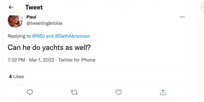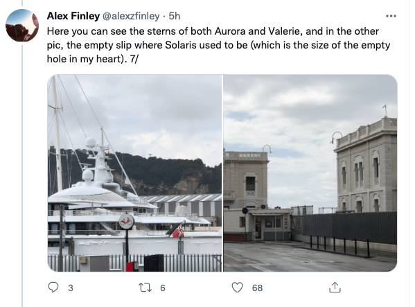 News coverage has reported Russian-owned yachts being moved quickly from their docks and slips to friendlier waters. Not to be outdone by the jetspotters, others around the world offered movement reports and sightings of yachts for possible seizure.