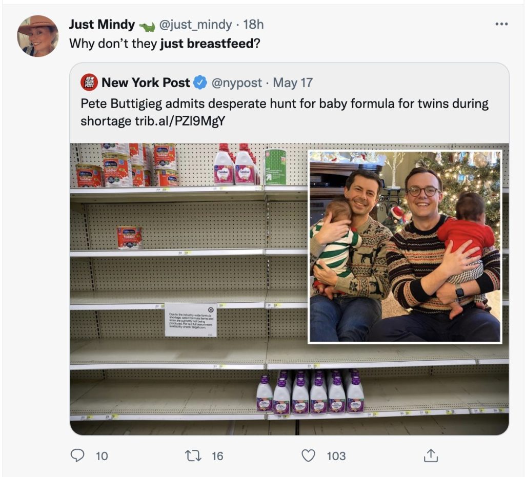 With American parents and infants deep into a baby formula shortage, there’s no shortage of blame being hurled on Twitter at anyone or anything that might be culpable — formula makers, the Food and Drug Administration, the coronavirus, capitalism and the Biden and Trump administrations. But a trip through the flame throwing with a Paraqeet search shows parents, grandparents, friends and even strangers are staying out of the muck and simply trying to make sure everyone can feed their babies.