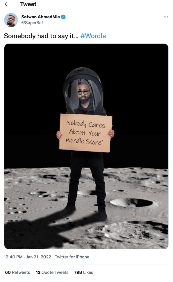 If you’re Team Wordle, your tweets border on bragging, express wonder at your prowess or lean on your squad for solace at a job poorly done. The haters are usually solitary, tweeting disdain for sharing your simple pleasures.