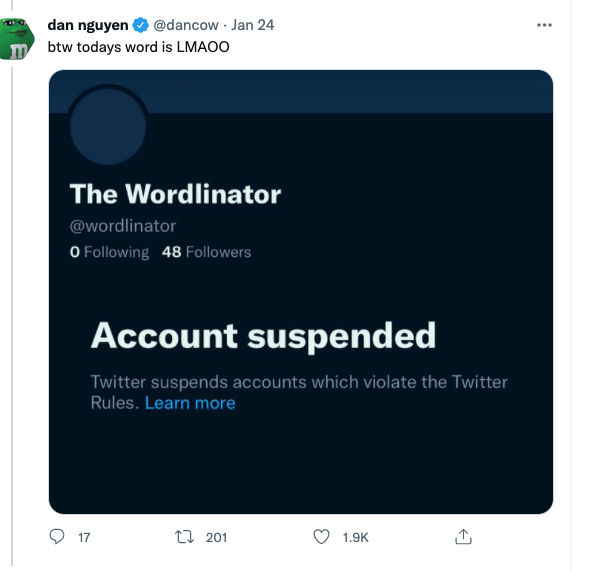 One Twitter account – @wordlinator – could contain its irritability no longer. The bot replied to people’s Wordle posts with rude messages and included a spoiler for the next day’s answer.
